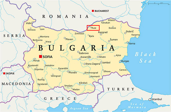Ruschuk is the fifth-largest city in Bulgaria. The city is situated in the northeastern part of the country, on the right bank of the Danube, opposite the Romanian city of Giurgiu, 300 km from the capital Sofia and 200 km from the Bulgarian Black Sea Coast. It is the most significant Bulgarian river port, serving an important part of the international trade of the country.